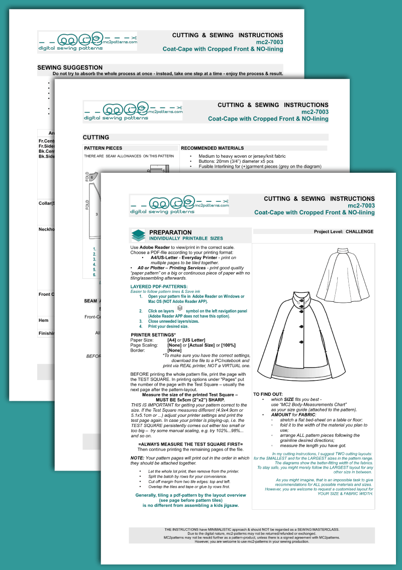 Digital PDF pattern for sewing a Cropped-Front Cape/Coat – comfy and elegant.