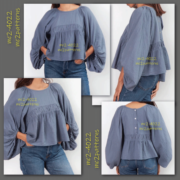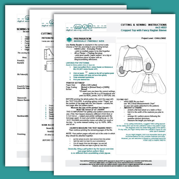 Digital-PDF pattern for sewing a Loose Cropped Top with Fancy Raglan Sleeves.