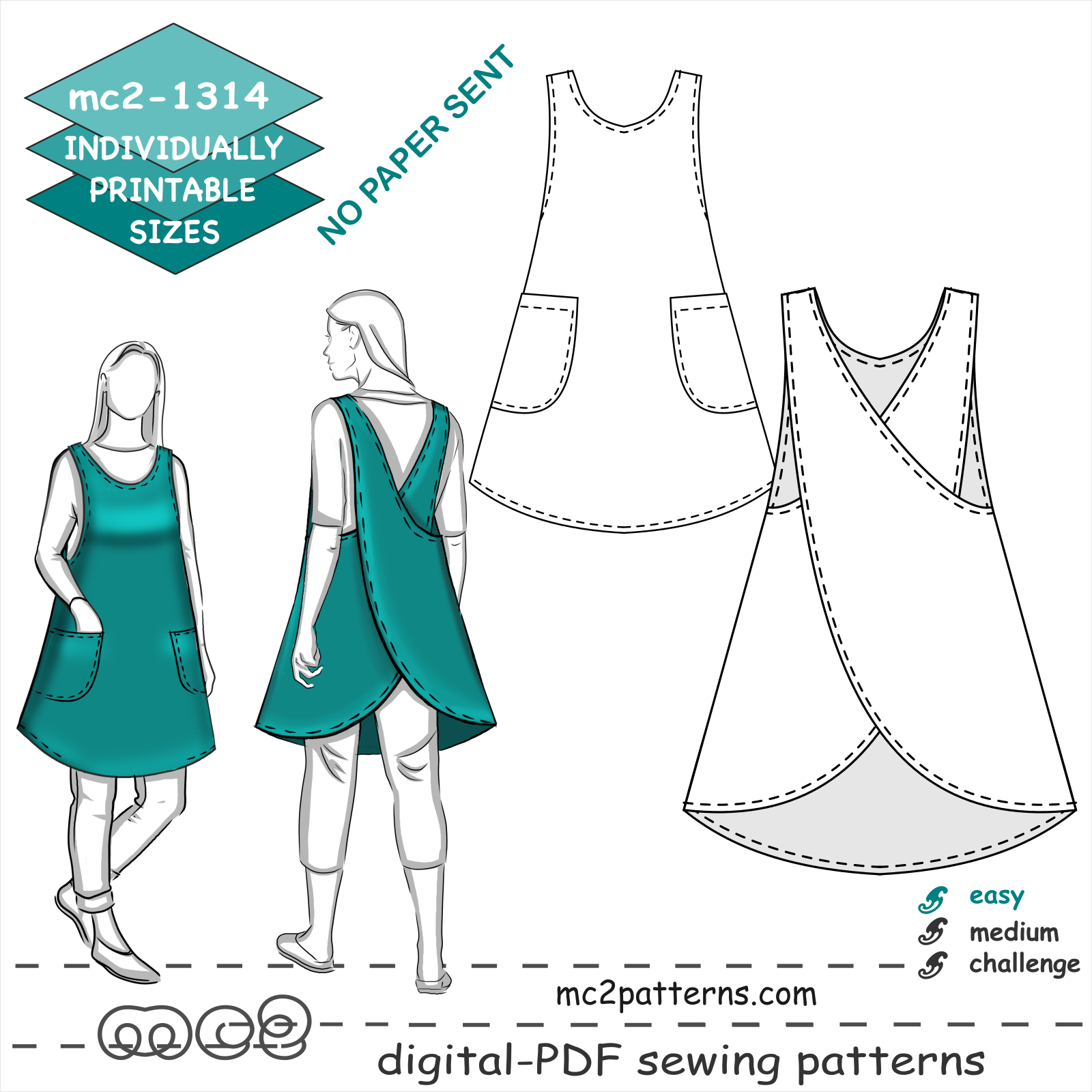 Digital PDF Sewing Pattern: Japanese-Style A-Line Cross-Back Apron with Side Seams & Pockets (Unlined)
