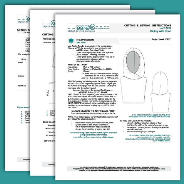 Dickey with Hood Sewing Pattern | Digital PDF (mc2-3027)