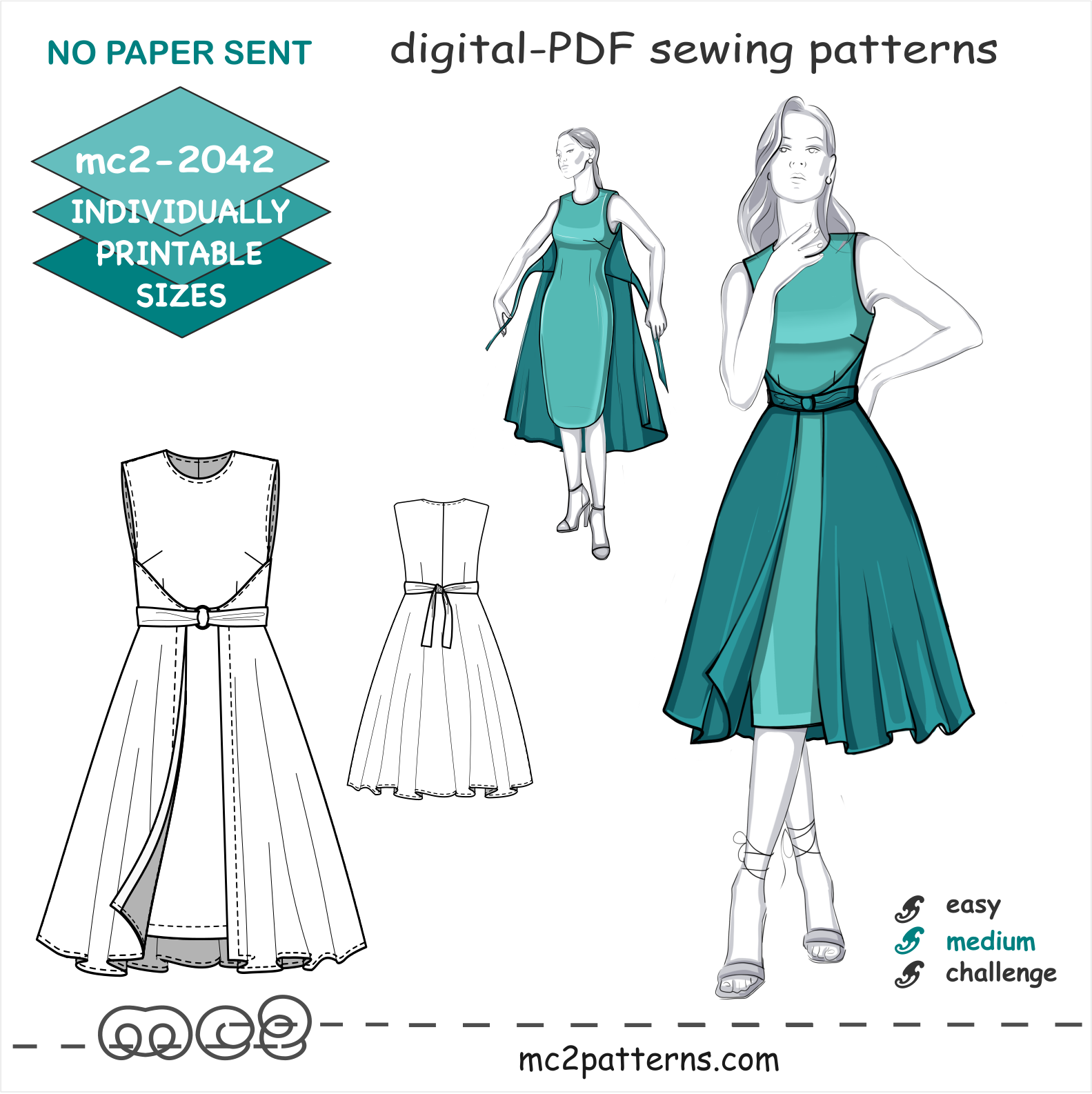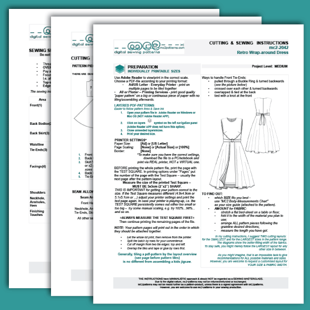 Digital-PDF pattern for sewing a Retro style Double-Wrap Dress.