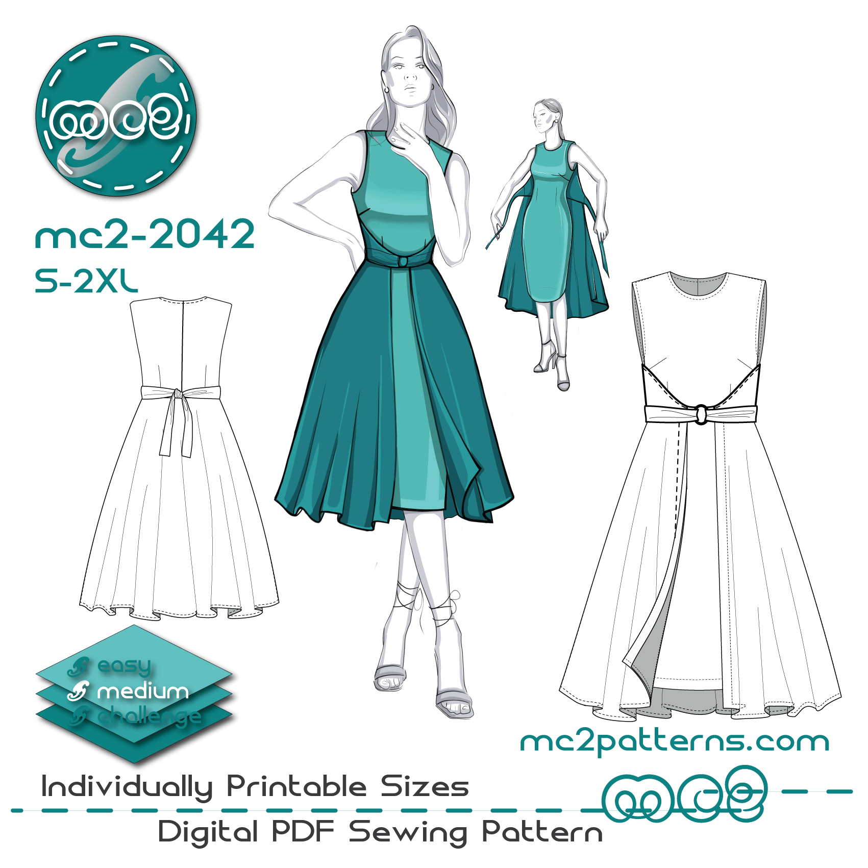 Create a beautifully dynamic silhouette with this unique sleeveless wrap dress pattern.