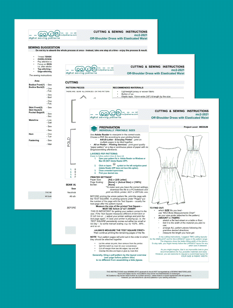 Create your very own Easy Off-Shoulder Dress with A-line Skirt, complete with a back-slit and side pockets, using our digital PDF sewing pattern.