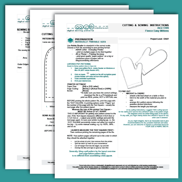 Mittens Sewing Pattern | Easy Digital PDF (mc2-1306)
