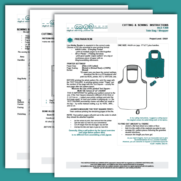 Digital PDF Sewing Pattern: Easy-to-Make Tote Bag/Shopper – Perfect for Beginners!