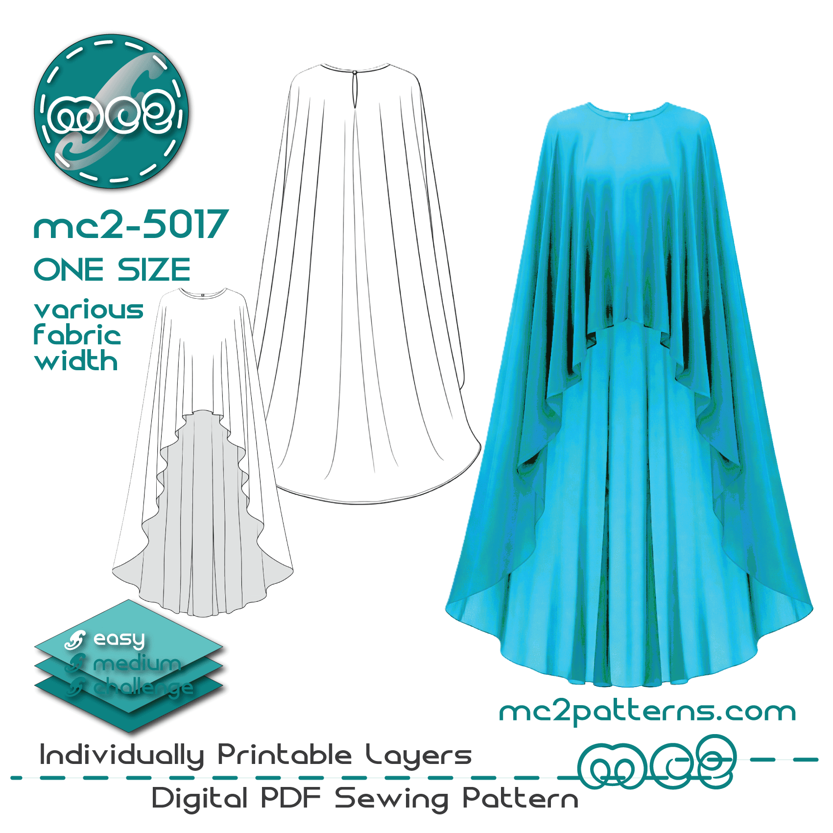 Digital PDF Sewing Pattern (no paper sent): Elliptical High-Low Cape with Back-neck Slit