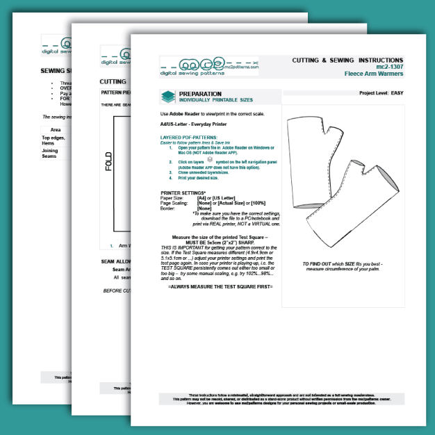 Fingerless Arm Warmers Sewing Pattern | Easy Digital PDF (mc2-1307)