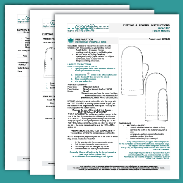 Fleece Mittens Sewing Pattern | Digital PDF (mc2-1303)