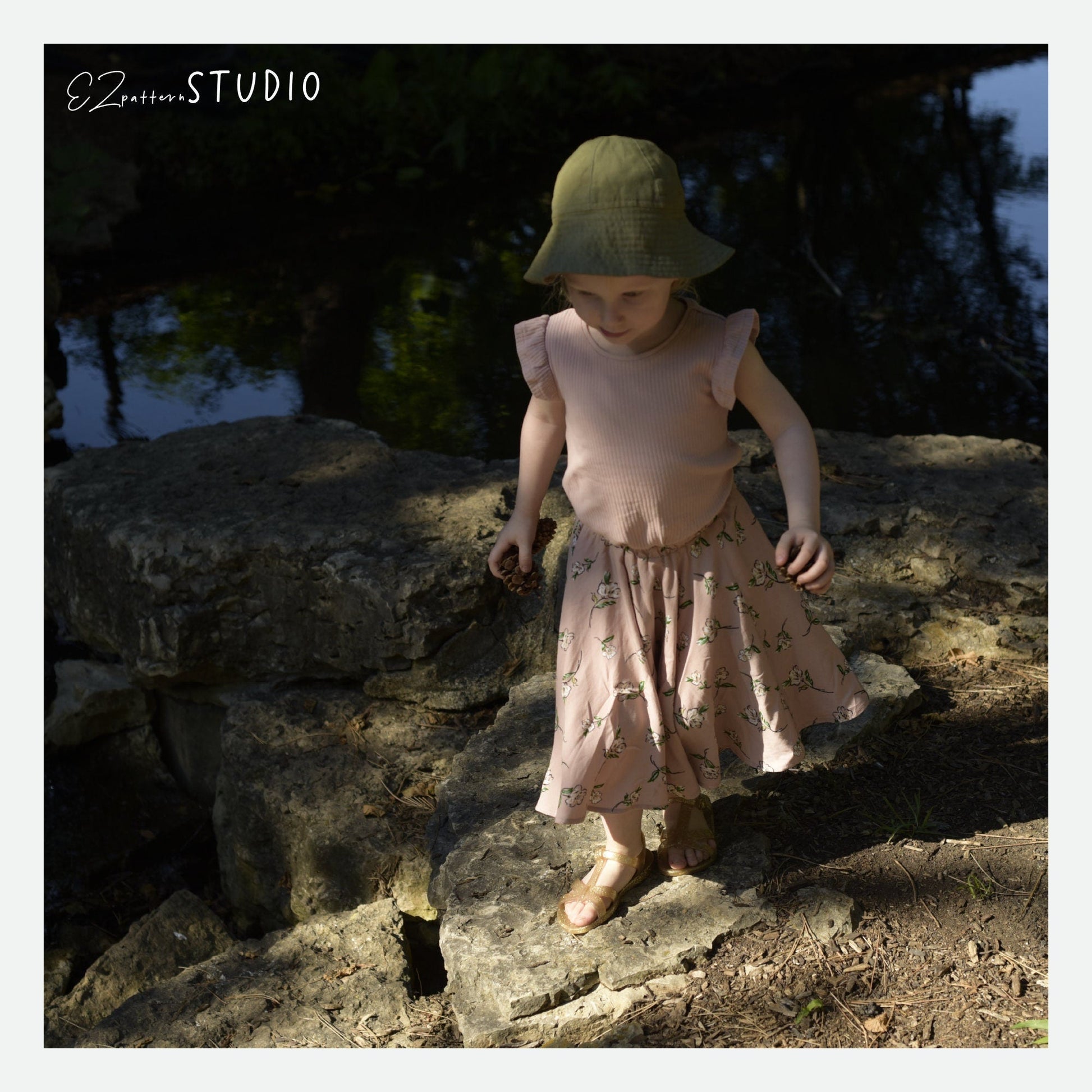 Digital sewing PDF pattern for making a Jersey or Woven Circular Skirt for kids.