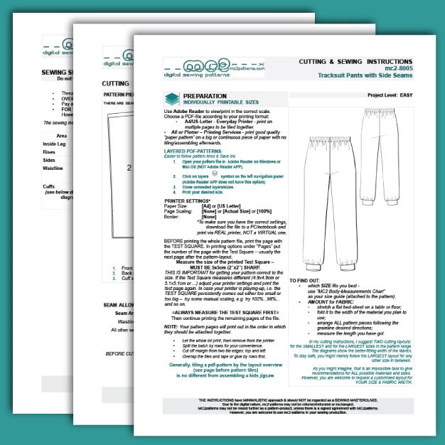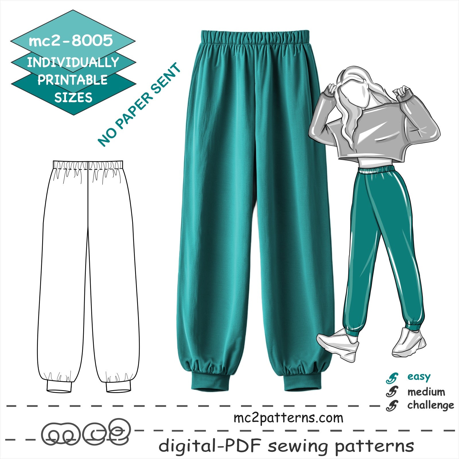 Digital-PDF pattern for sewing Jersey Leisure/Track/Sweat/Joggers or Pyjama Pants.