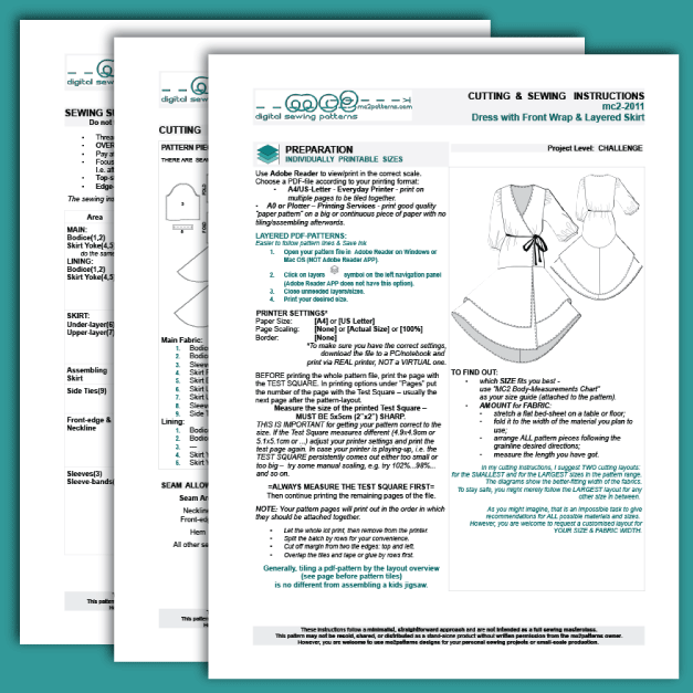Digital PDF Sewing Pattern (no paper sent): Lined Wrap Dress with Layered Skirt & 3/4 Puff Sleeves