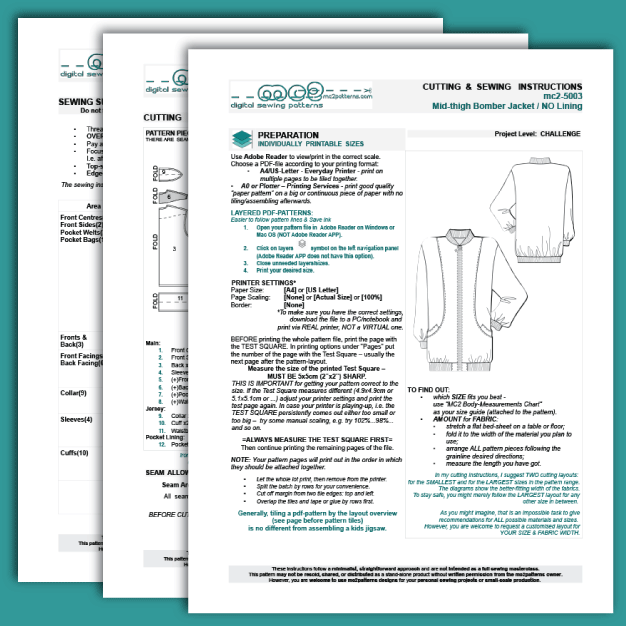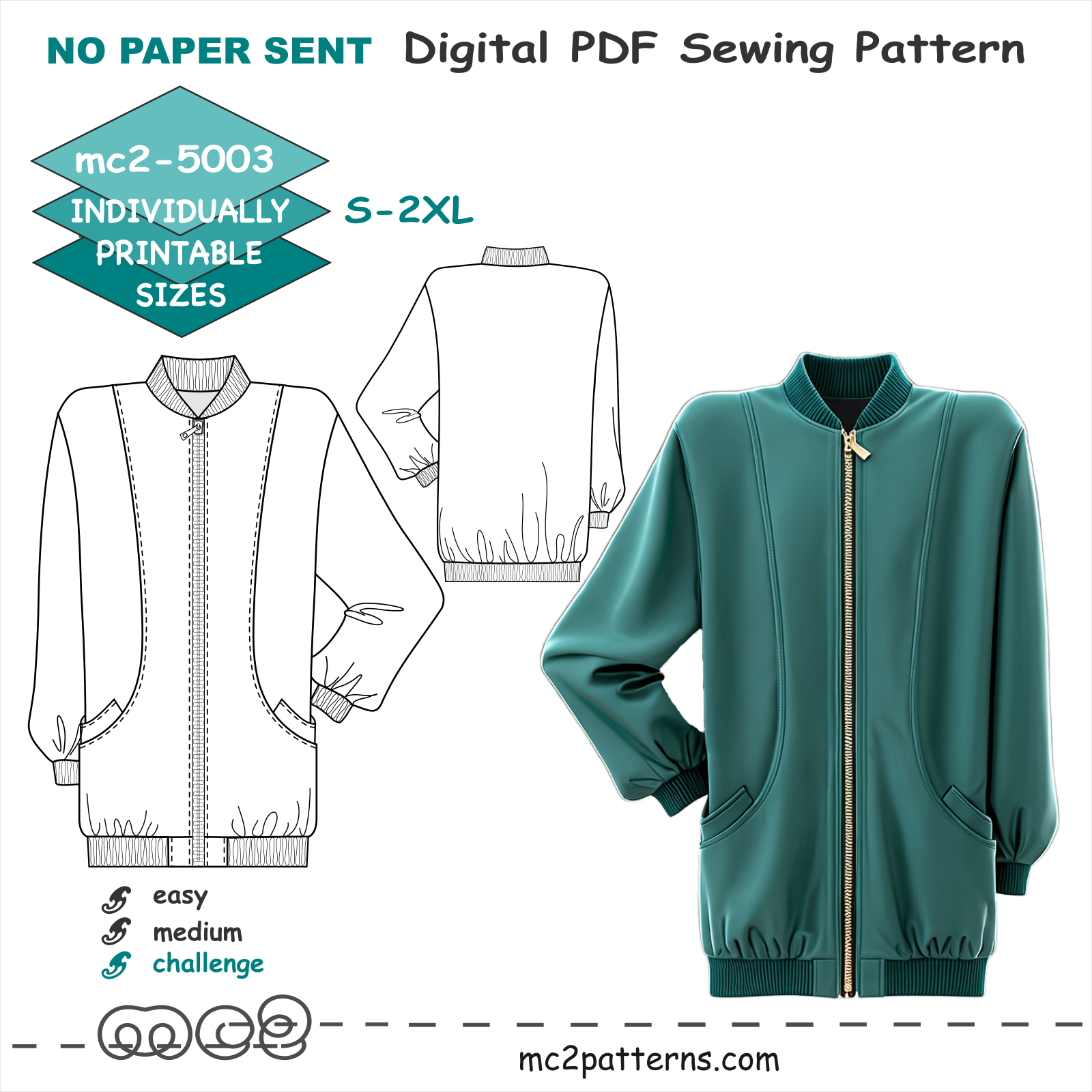 Digital-PDF Sewing Pattern – Long Bomber Jacket with Side Panels & Welt Pockets (mc2-5003)