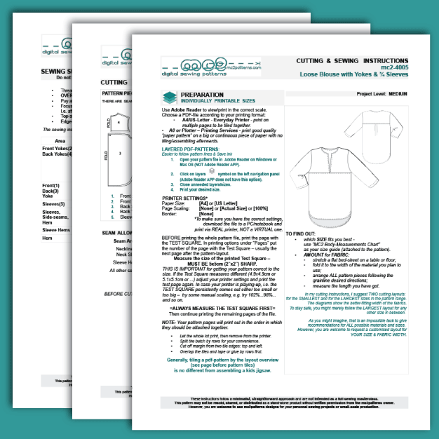 Loose Blouse Sewing Pattern | Digital PDF (mc2-4005)