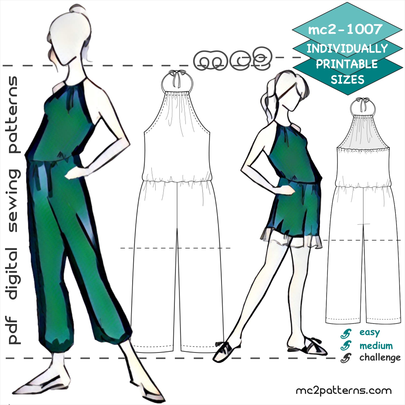 Digital PDF-pattern for sewing a Loose-fit Cropped Jumpsuit with Halter-Neck.