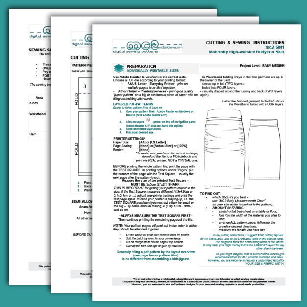 Digital PDF Sewing Pattern (no paper sent): Maternity High-Waisted Bodycon Jersey Skirt with Draped Front