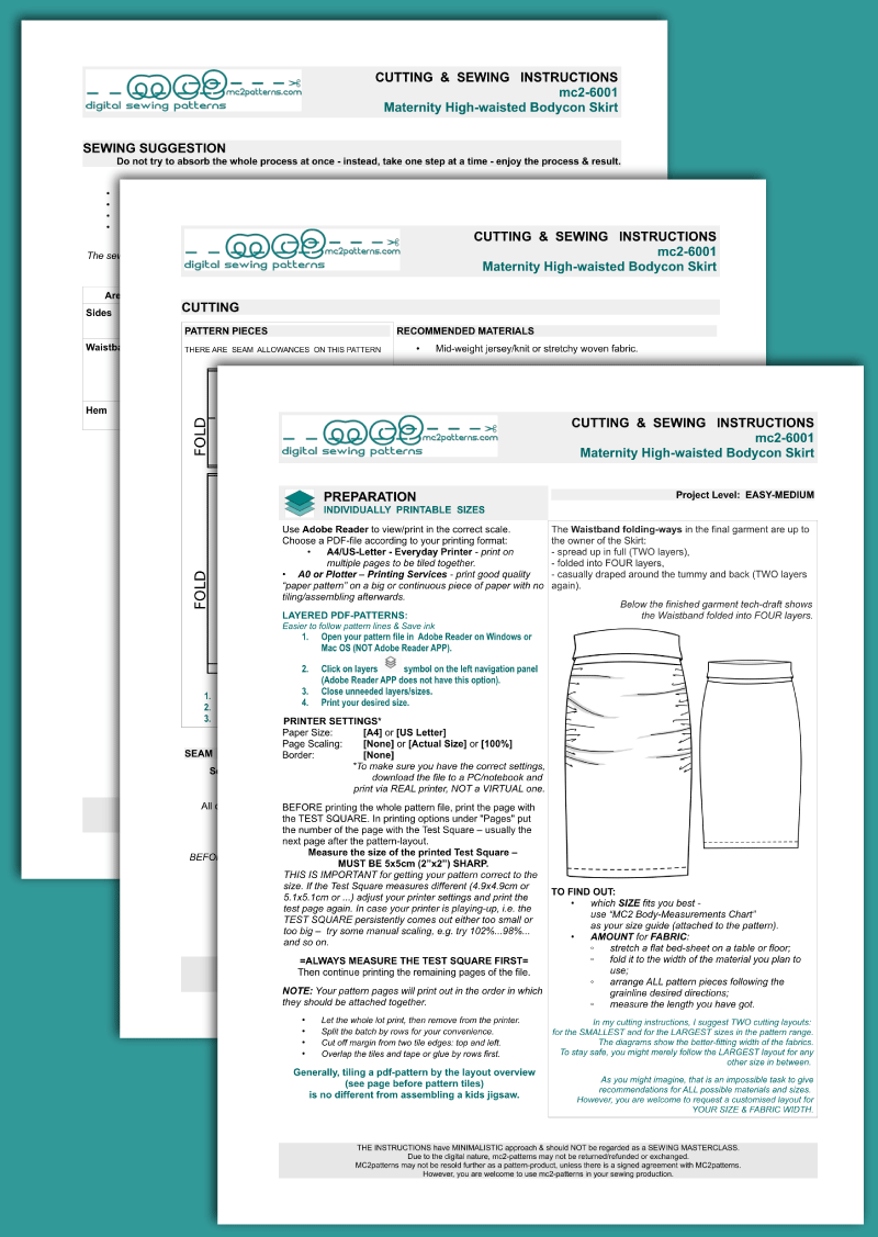 Digital PDF-pattern for sewing a Maternity High-Waisted Bodycon Jersey Skirt with Draped Front.
