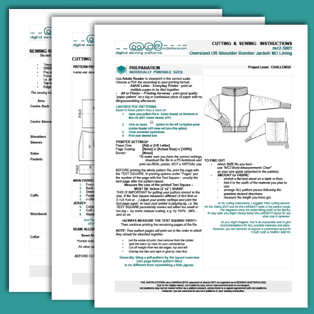 Digital PDF Sewing PATTERN - Oversized Off-Shoulder Bomber Jacket (Unlined).