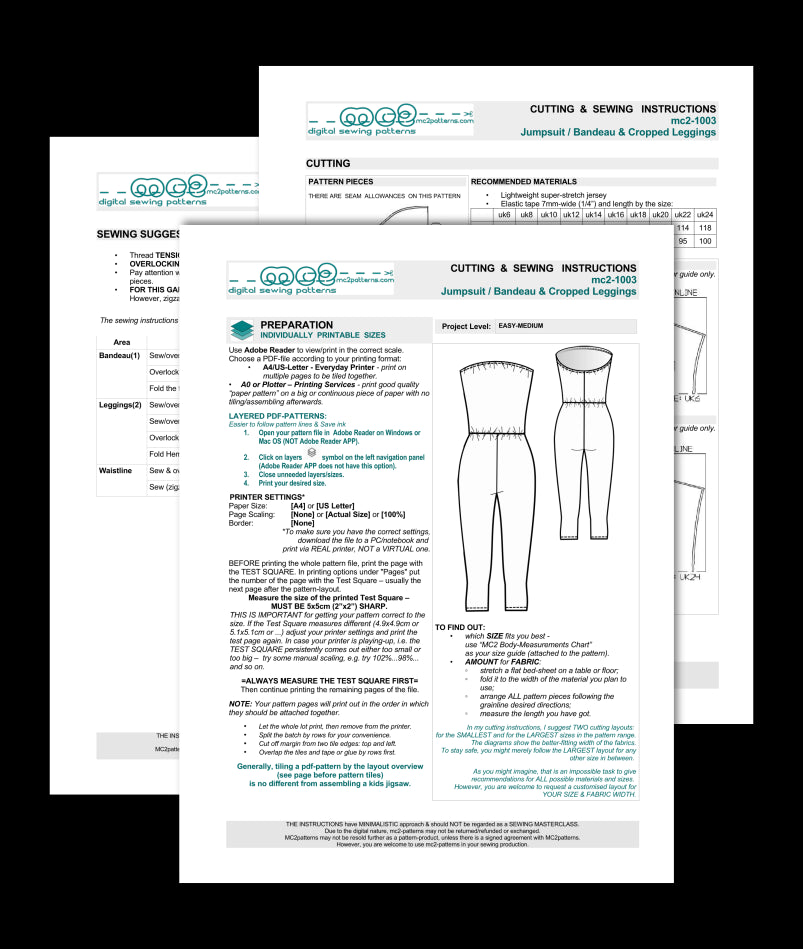 Digital PDF-pattern for sewing a PLAYSUIT CATSUIT with BANDEAU Top & CROPPED LEGGINGS-style Bottom.