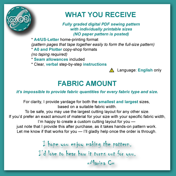 If you’d prefer an exact amount of material for your size and specific fabric width, I’m happy to create a custom cutting layout for you — just note that I provide this after purchase, as it requires hands-on pattern work.