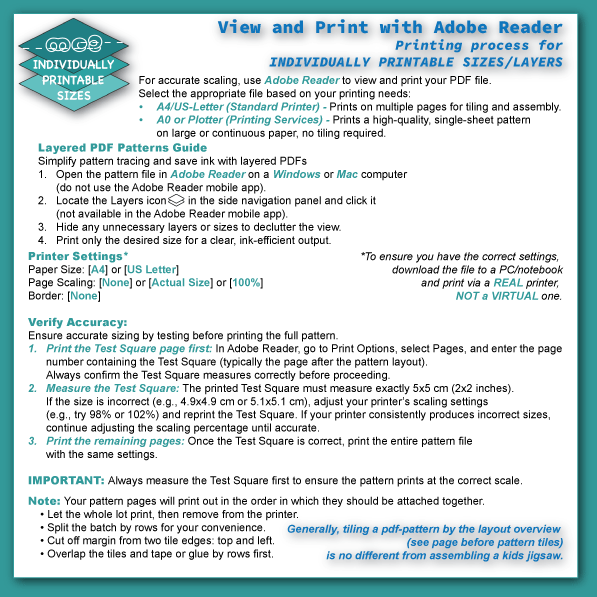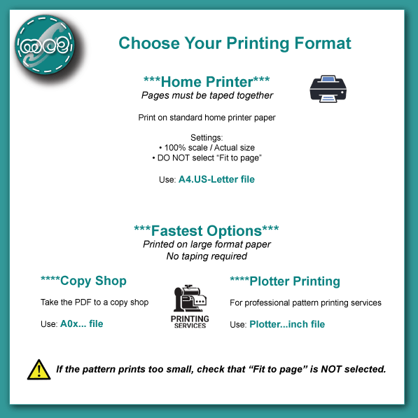 - Your patterns will print on multiple pages to be tiled together (except Plotter).