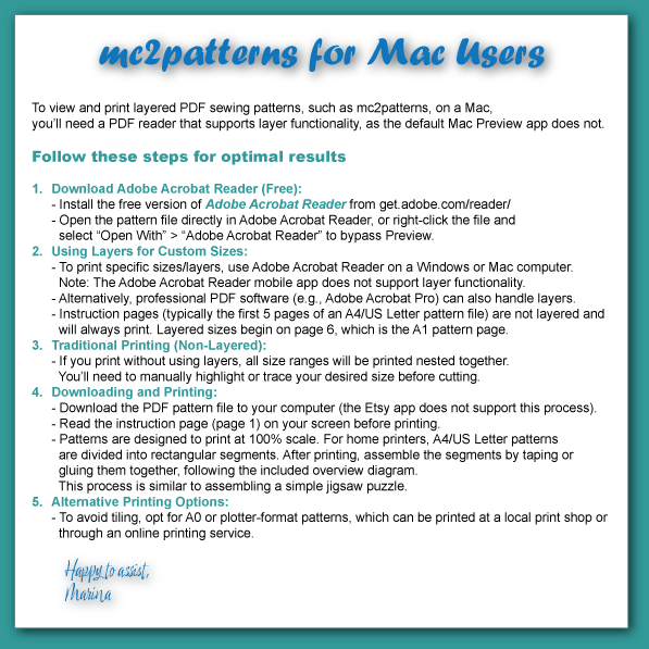 - You are welcome to use MC2 patterns in your sewing production.