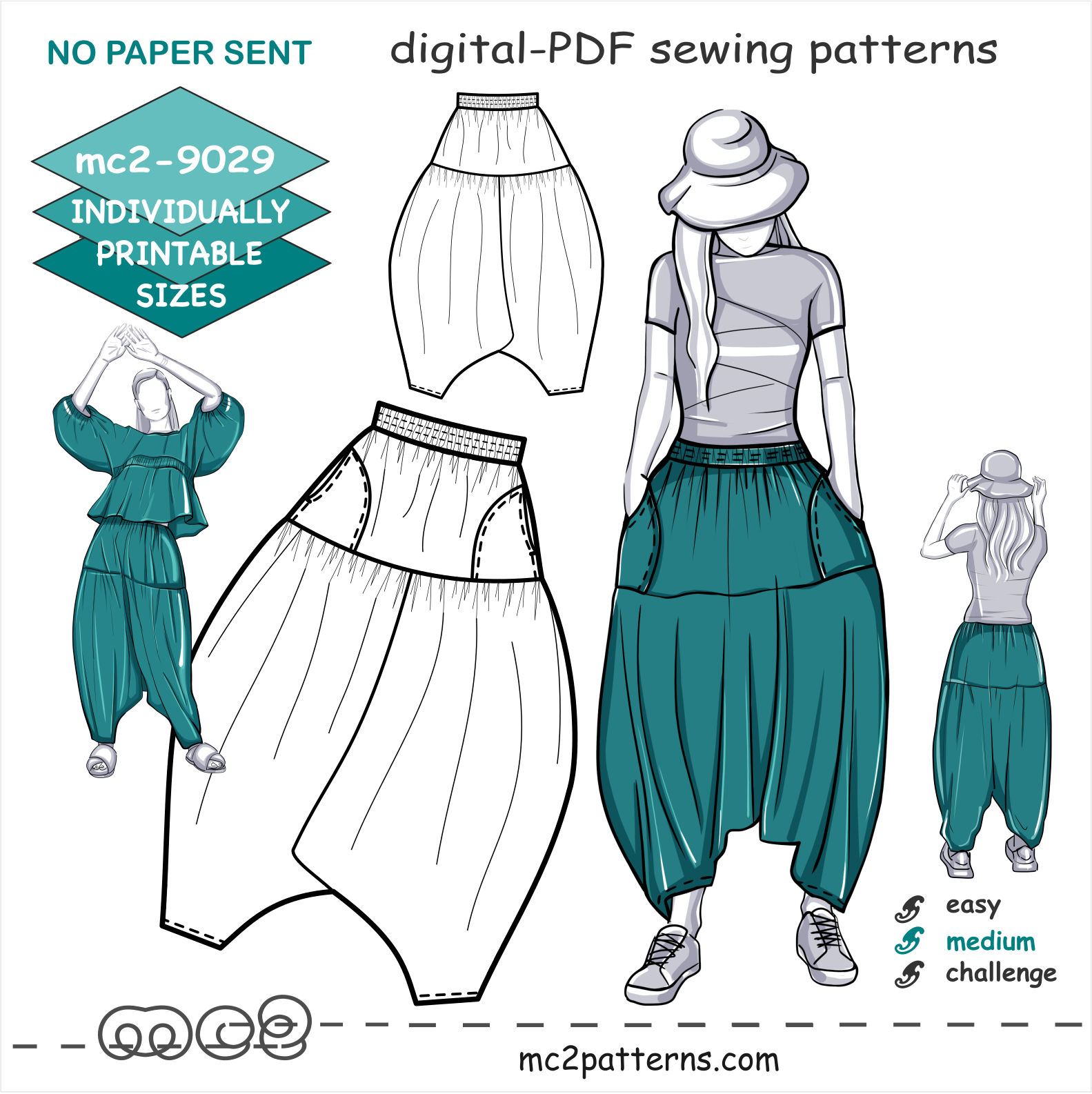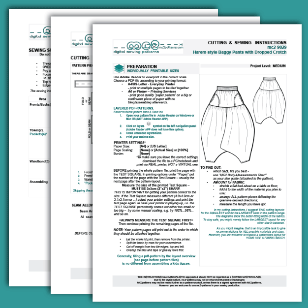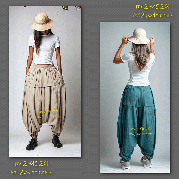 Digital-PDF pattern for sewing Harem-style Loose-Fitting Pants.