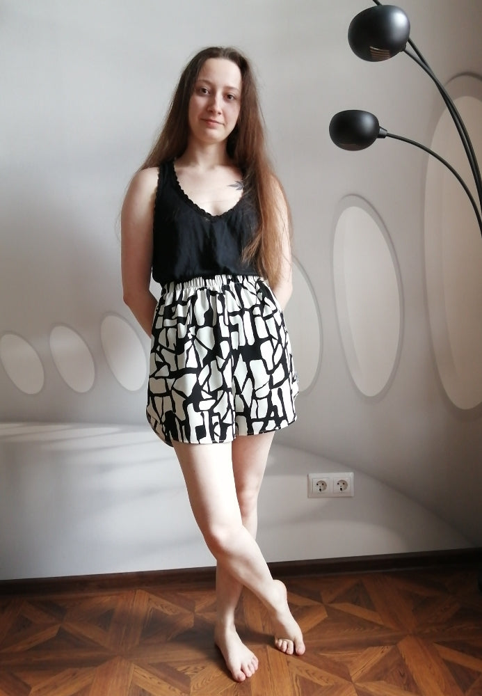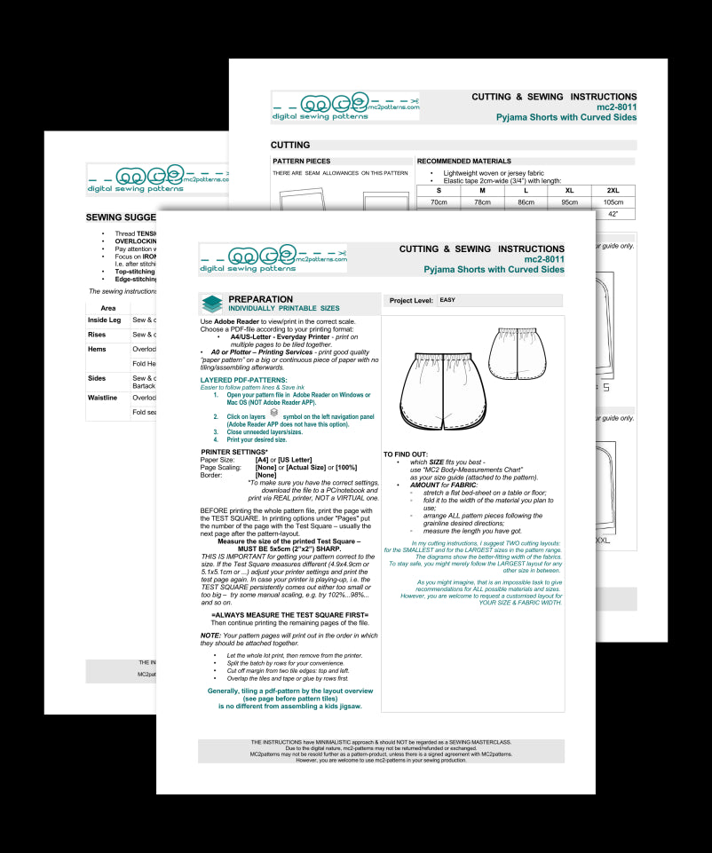 Digital PDF-pattern for sewing Pyjama/Pajama Shorts with Curved Sides.