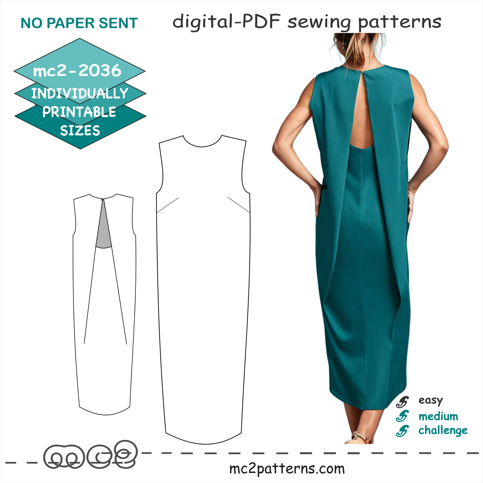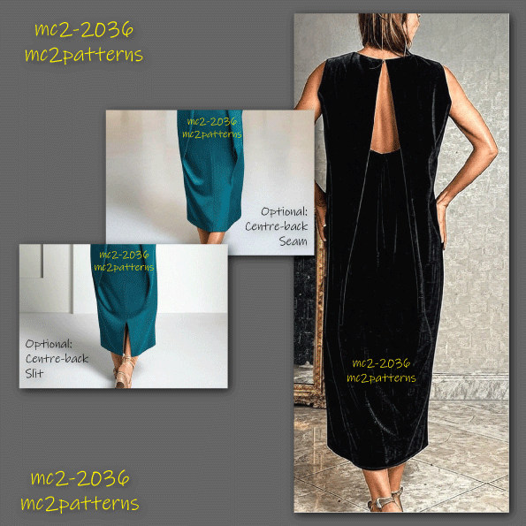 Digital-PDF pattern for sewing an Elegant, Minimalist Dress with a Sculptured-back Design.