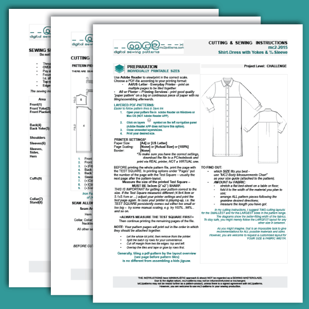 Digital PDF pattern for sewing a Shirt-Dress or Summer-Duster with Front & Back Yokes, ¾-Sleeves, Shirt-Collar & Front Placket.