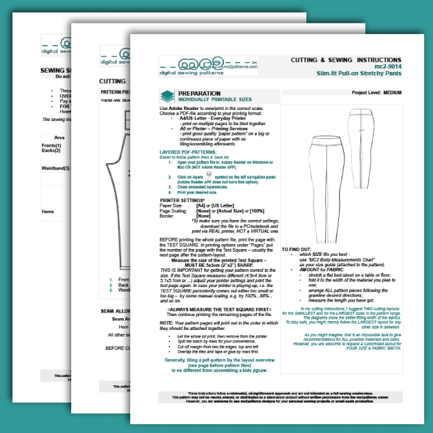 Slim-fit Pull-on Stretchy Pants / Leggings Sewing Pattern | Digital PDF (mc2-9014)