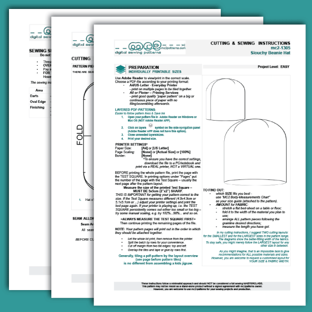 Slouchy Beanie Hat – Digital PDF Sewing Pattern (mc2-1305)