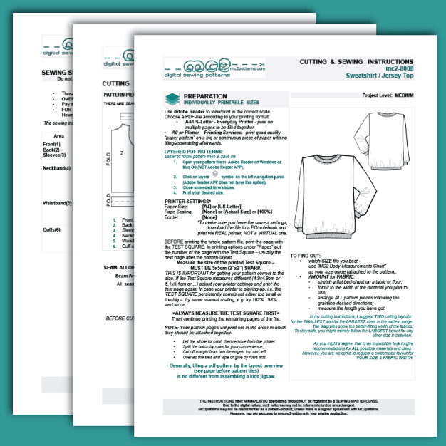 To find out which size of mc2pattern to choose – use MC2 Body Measurements Chart as your Size Guide.