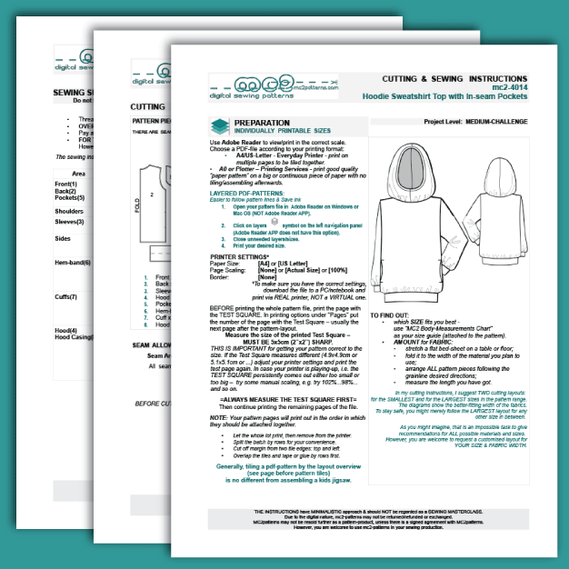 Women's Jersey Hoodie Sweatshirt Digital PDF Sewing Pattern.