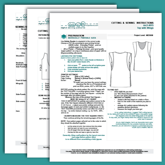 Digital-PDF Sewing Pattern — Top with Wings & Side Vents (mc2-4015)