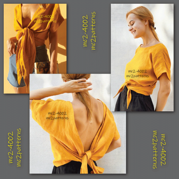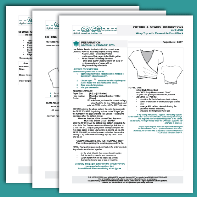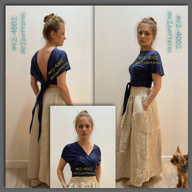 Digital PDF pattern for sewing a Wrap Top with a Reversible/Transformer Front and Back.